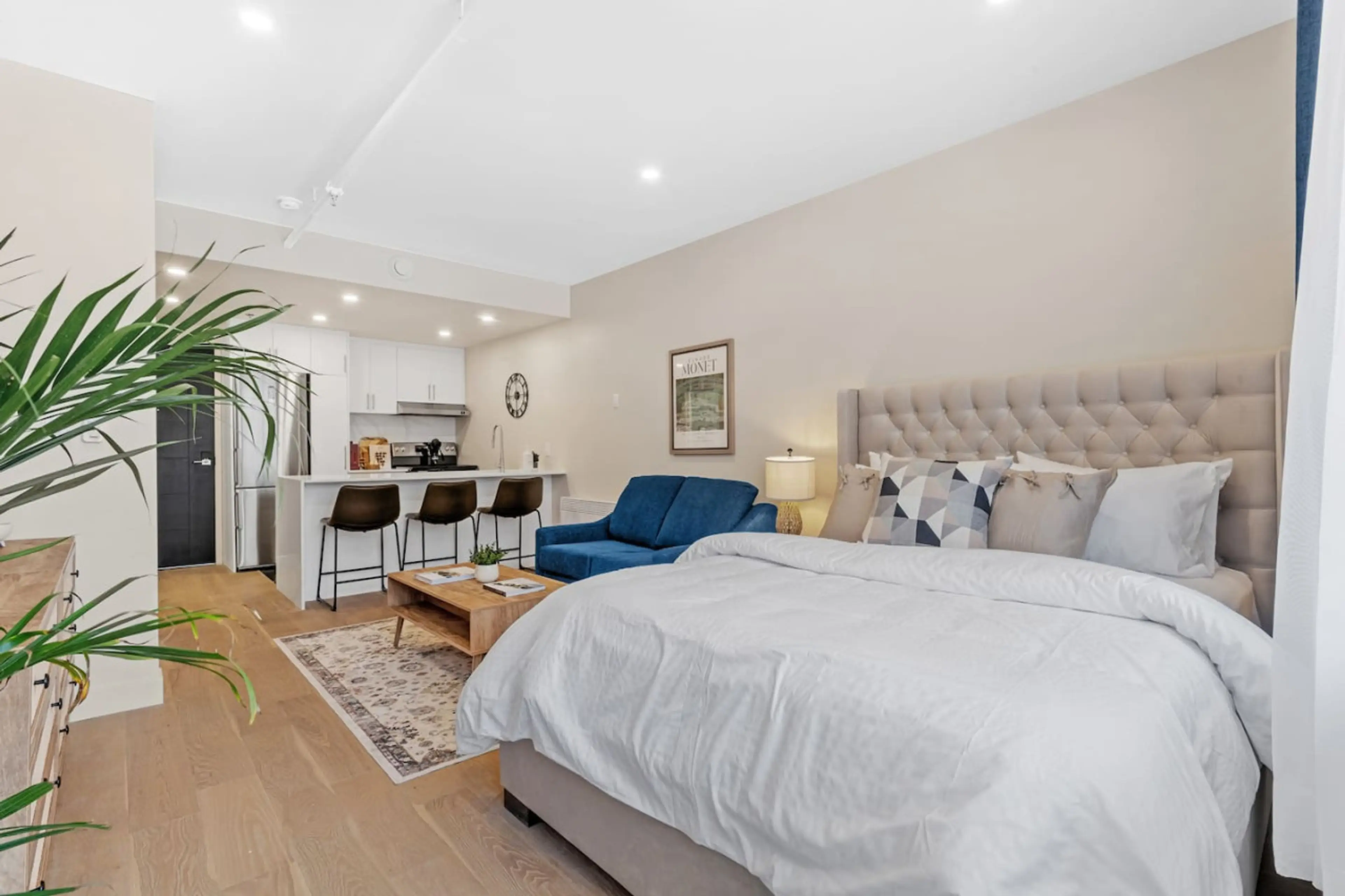 Experience the comfort of home in the heart of Montreal. Our modern full suites feature stylish living spaces, private bedrooms, and fully equipped kitchens—perfect for short or long stays. Whether you’re visiting for business or leisure, Namaste Suites offers the ideal blend of convenience, comfort, and elegance.