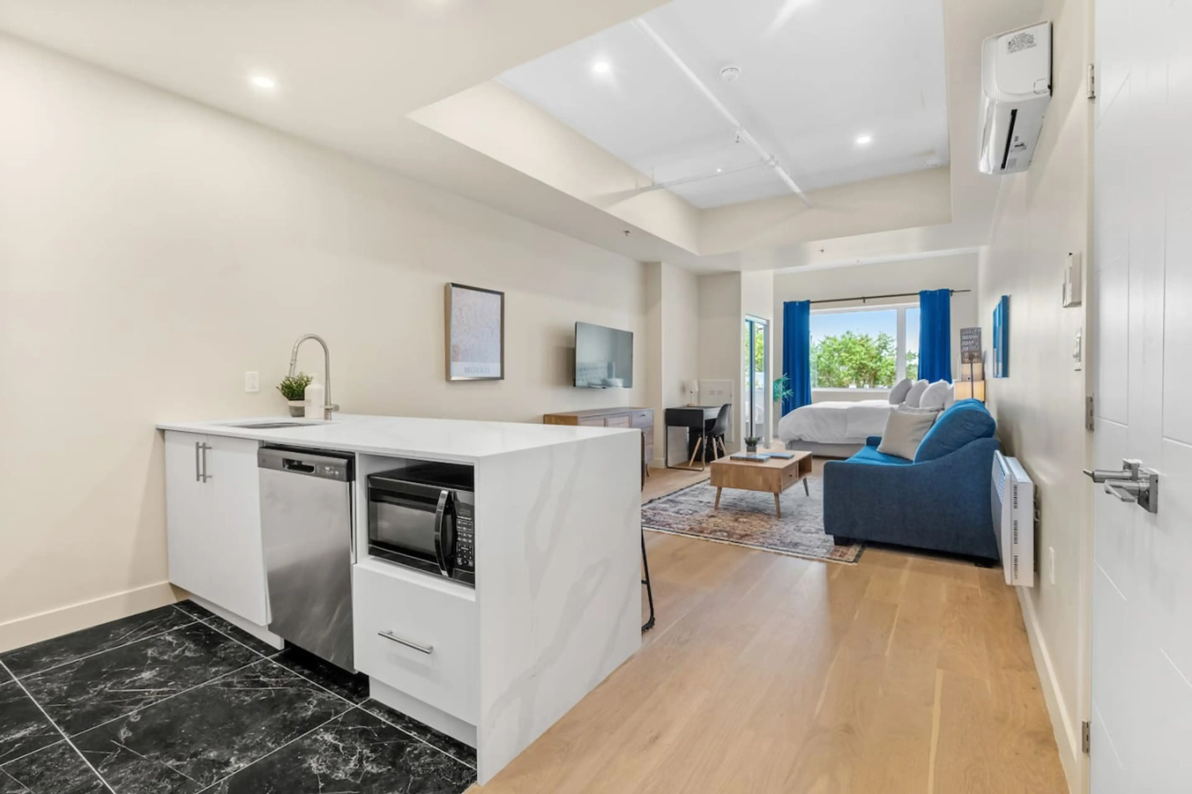 F1 Weekend Grand Opening! Introducing our stylish 1-bedroom suite, featuring a luxurious king-size bed + sofa bed to accommodate up to 4 guests. This modern retreat offers chic furnishings and upscale amenities, ensuring a comfortable stay for small groups or families. With its prime location, our s...