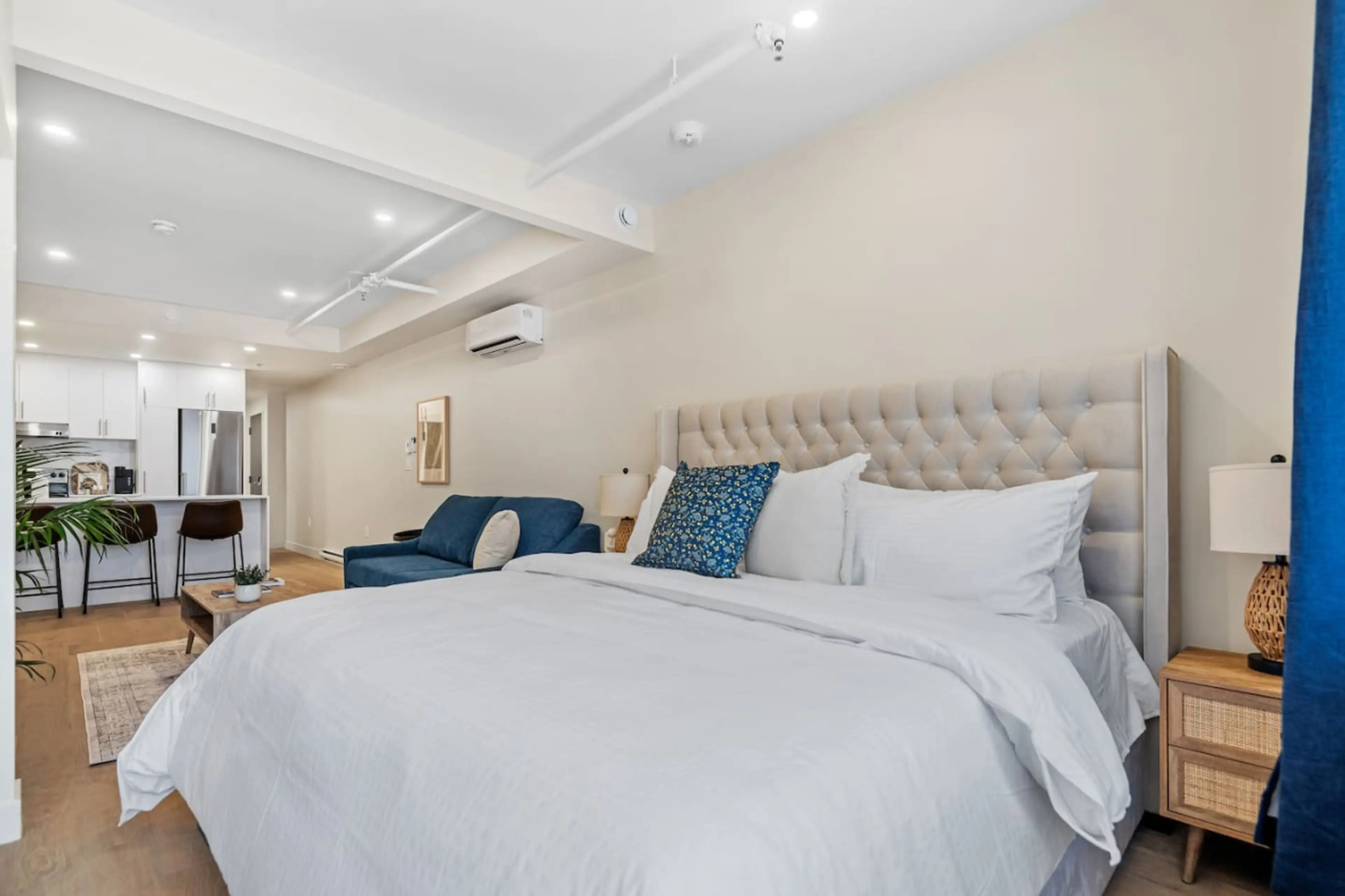 F1 Weekend Grand Opening! Introducing our stylish suite, featuring a luxurious king-size bed + sofa bed to accommodate up to 4 guests. This modern retreat offers chic furnishings and upscale amenities, ensuring a comfortable stay for small groups or families. With its prime location, our suite provi...